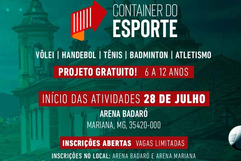 Inscrições abertas para Projeto Container do Esporte na Arena em Mariana: de 6 a 12 anos