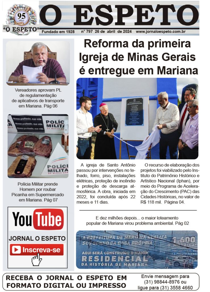 Na última terça-feira, 23 de abril de 2024, Mariana celebrou a entrega das obras de restauração da Capela de Santo Antônio e requalificação do Largo de Santo Antônio. A igreja de Santo Antônio passou por intervenções no telhado, forro, piso, instalações elétricas, proteção de incêndio e proteção de descarga atmosférica.