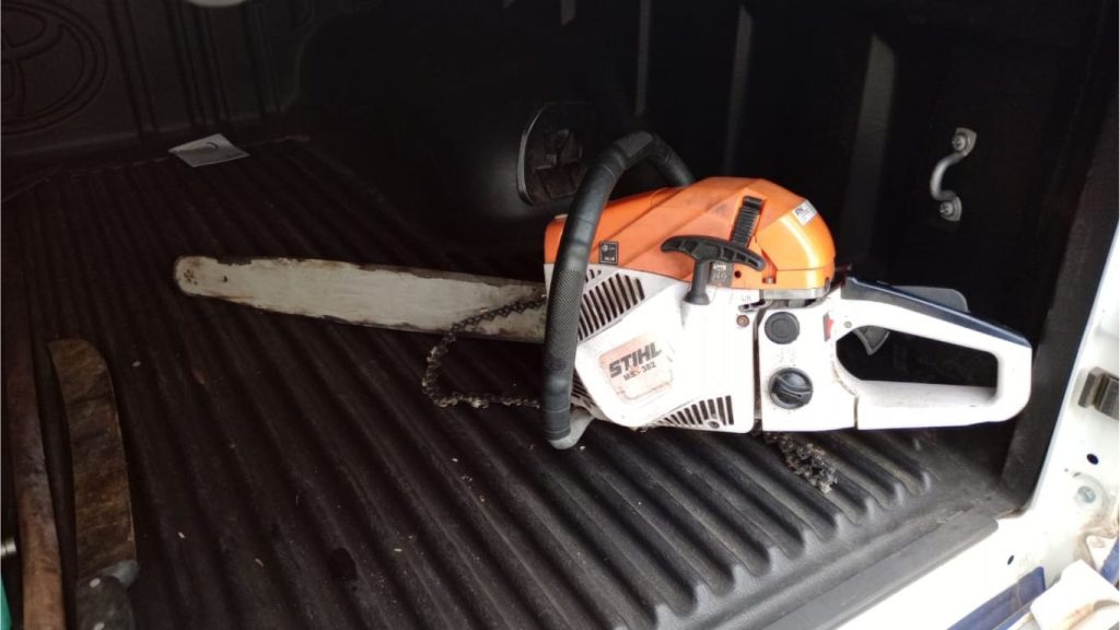 “A Guarda Ambiental realizou a condução de um homem, de 36 anos, à delegacia de Polícia Civil por desmatamento em área de preservação, no bairro Vila São Vicente, em Passagem de Mariana. A ação aconteceu segunda-feira (27/05/2024), após denúncia pelo número 153. Também foram apreendidos uma motosserra, foice e facão. Conforme o subsecretário de Segurança Pública, GCM João Paulo Felipe, a atuação da Guarda Civil Municipal (GCM), além de conter crime ambiental, também é uma resposta às invasões de terra no município. “A região possui histórico de grilagem e construção irregular de casas”, explica. Dois suspeitos evadiram no momento da ocorrência. A área de interesse ecológico e preservação permanente do bairro São Vicente é garantida pela Lei nº 1.582/2001.”