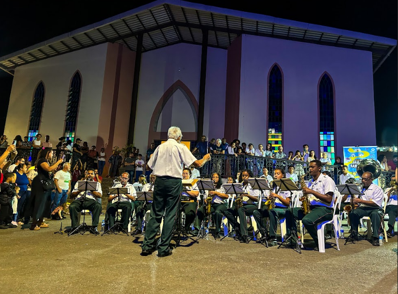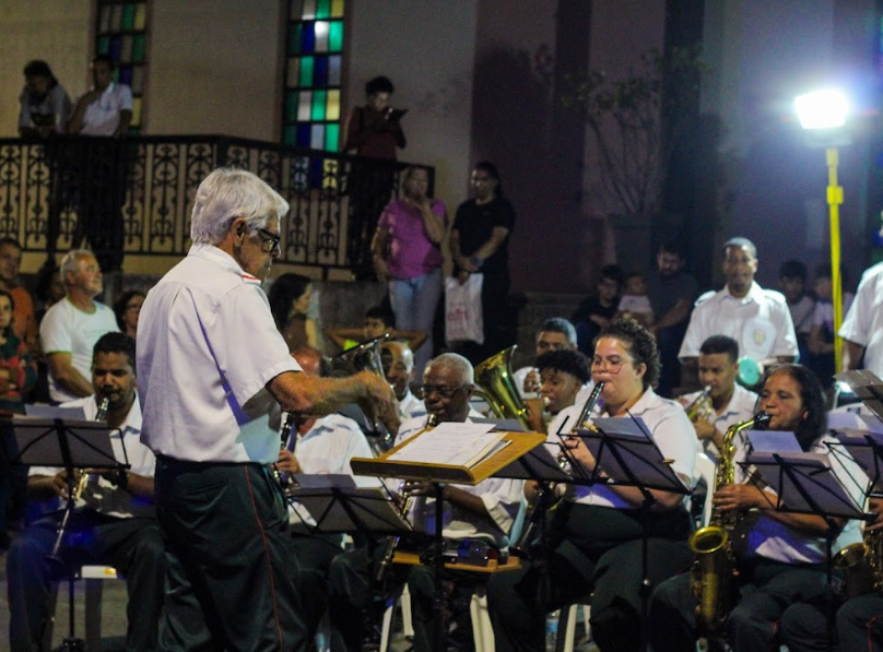 Na noite do último domingo, 25 de agosto de 2024, a Sociedade Musical São Sebastião se apresentou no adro da Igreja de Nossa Senhora Aparecida, localizada no bairro Cabanas. O espetáculo da banda civil de Passagem de Mariana faz parte do projeto Para Ver a Banda Passar.
