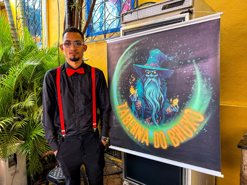 Bruno Carvalho se fez presente com a “Taberna do Bruxo”, um stand de diversos drinks feitos na hora. “Meus produtos são drinks variados. Caipirinha, whisky, gin, mojito, entre outros. Eu vim de BH para cá já tem um ano, e nesse tempo eu trabalho com isso, mas aqui mesmo, tem quatro meses. Participar do Sabadinho é muito bom, porque dá mais visibilidade, conhecemos mais pessoas da comunidade, elas vêm e acabam conhecendo nosso trabalho.”