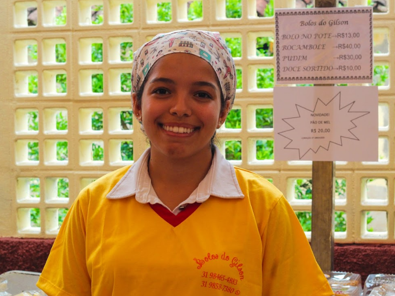 Alice Cota é filha de Gilson, dono do empreendimento “Bolos do Gilson”, que prepara bolos, tortas e doces para eventos festivos. “A empresa Bolos do Gilson é do meu pai, ele faz bolos há mais de 15 anos. A gente participa aqui do Sabadinho desde o primeiro que teve. E é muito bom, é uma forma muito boa de divulgar a empresa, e mostrar às pessoas todos os produtos com os quais a gente trabalha, de uma forma mais interativa.”