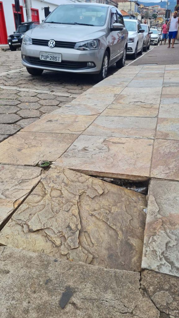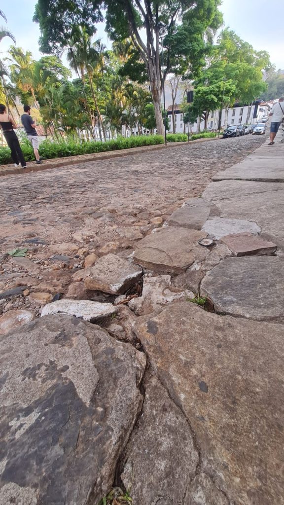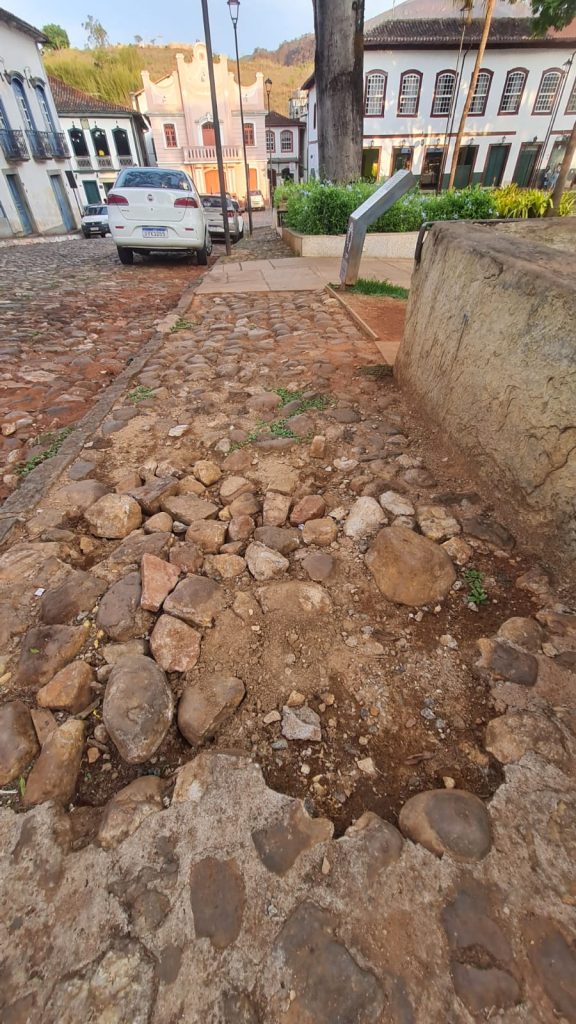 Em toda cidade tem buracos. Porém só Mariana vemos o desleixo das ruas centrais e históricas causando acidentes e machucando pessoas.