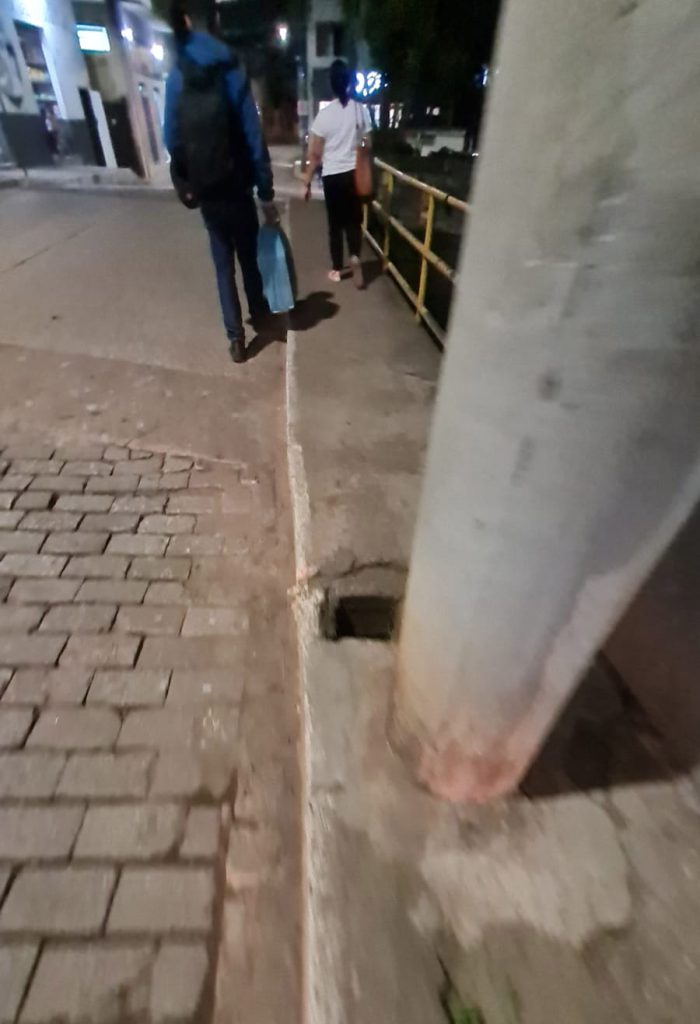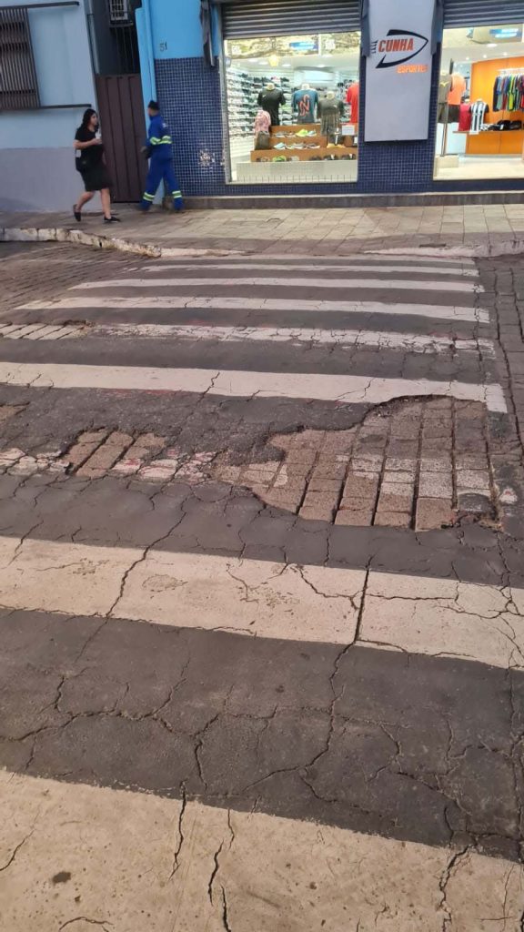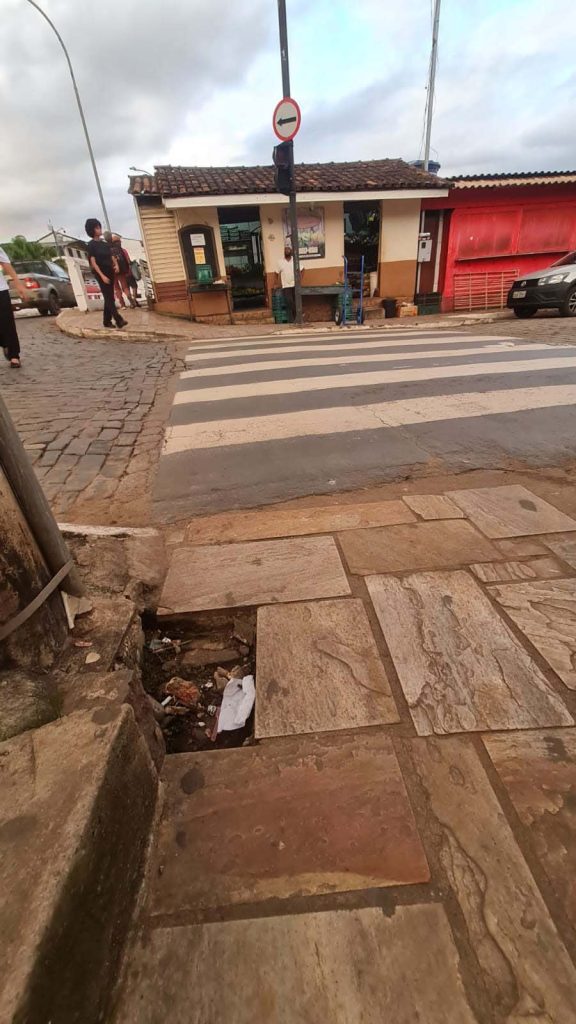 O centro histórico e comercial de Mariana é um queijo cheio de buracos, até em frente a lojas, bancos, escolas, locais de grande movimento. Não podemos ver a cidade não pensar no bem estar dos pedestres pelo menos no centro histórico e comercial por ter grande aglomeração dificulta a visão dos perigos.