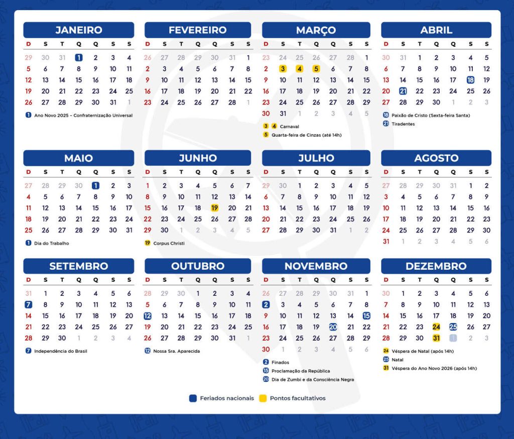 Confira o calendário: