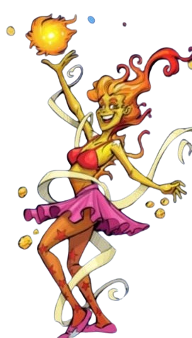 Como é : È uma bola de fogo com luz amarela forte que brilha, ela flutua próximo ao chão em locais que tem ouro. Ela tem o poder de ficar minúscula e se tornar muito grande.