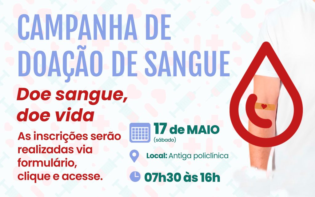 A Prefeitura de Mariana, por meio da Secretaria Municipal de Saúde, em uma iniciativa da Associação Doe Sangue Mariana e em parceria da Fundação Hemominas, realiza neste sábado (17) a ação “Doe sangue, salve vidas”, de 07h30 às 16h, no setor de Fisioterapia da Antiga Policlínica. Para participar, basta realizar a inscrição CLICANDO AQUI.