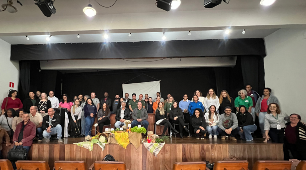 Ao longo da manhã, os participantes discutiram formas de fortalecer a articulação entre quem produz, quem orienta tecnicamente e quem realiza a compra dos aIlmentos escolares, buscando soluções conjuntas para melhorar o fluxo entre campo e escola.