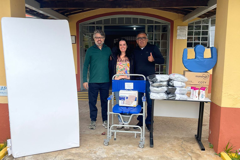 Sabe aquela sensação de dever cumprido! Hoje quarta-feira (15/05) realizamos a entrega das doações da campanha “Seja Pé Quente, ajudando a aquecer outros pés”, promovida pelos Companheiros LEO do extinto LEO CLUBE Gaveteiro de Mariana-MG. Através dos valores recebidos, foram adquiridos 96 (noventa e seis) pares de meias e a pedido da direção da entidade, com o valor restante adquirimos 54 unidades de creme para o corpo. Produto utilizado diariamente pelos idosos que vivem no Lar Santa Maria. Após conhecimento da campanha, uma mesma família que possui moradores em Cachoeira do Campo e Ouro Preto, doaram: 01 (um) andador; 01(uma) cadeira de rodas; 01 (uma) Almofada Giro Fácil Ortopédica P/auxilio De Pessoas Acamadas; 01 (um) Colchão Geriátrico Espuma D45 Firme Impermeável e 01 (um) Colchão hospitalar Pneumático. O andador e a cadeira de roda foram presenteados para um idoso de Santo Antônio do Leite, que necessita dos equipamentos que o Lar Comunitário Santa Maria, tem disponibilidade no momento. Já os demais equipamentos foram entregues a instituição conforme foto. Nós Companheiros do extinto LEO CLUBE Gaveteiro, agradecemos a todos os envolvidos nesta campanha. Foto: A empresária Aline Lage e também Diretora do Lar Comunitário Santa Maria e Companheira LEO, juntamente dos seus Companheiros LEO Moacir Maia e Helielcio Vieira, representando os demais companheiros e todos os doadores que não puderam participar da entrega. Gratidão é a palavra de ordem.