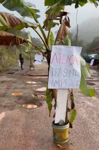 Manifestantes colocaram bananeiras próximo aos buracos.