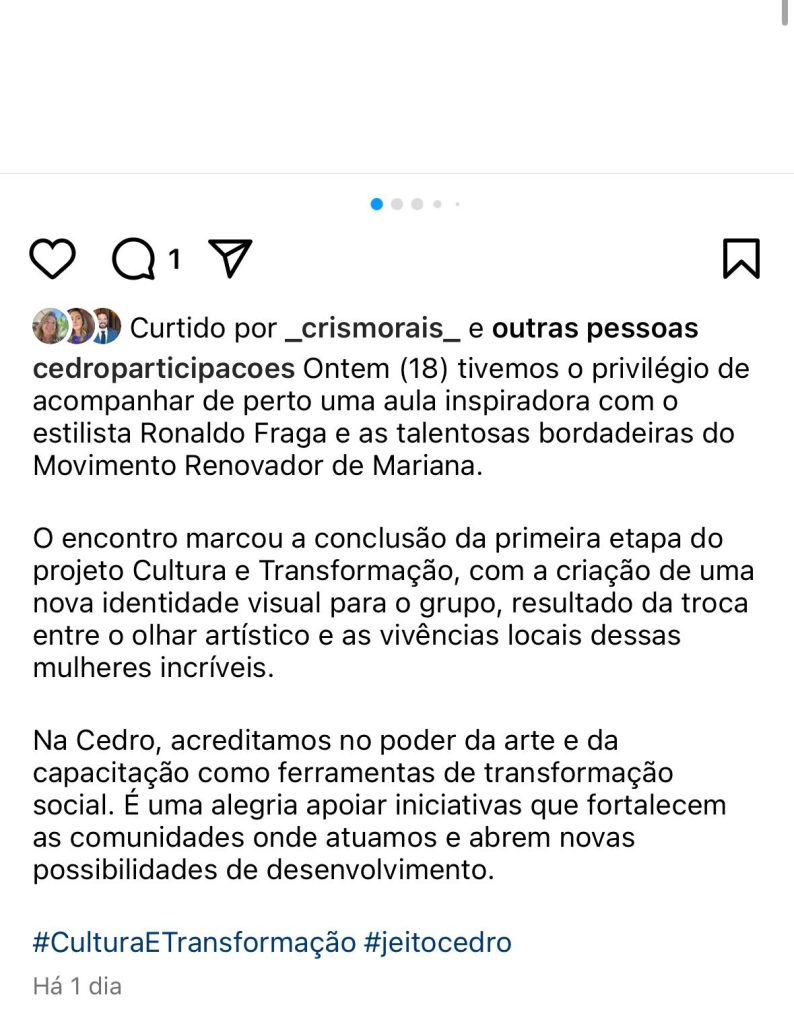 Evento contou com o patrocínio da Cedro Mineração e reuniu o renomado estilista Ronaldo Fraga em uma celebração da moda, cultura e da economia criativa local.