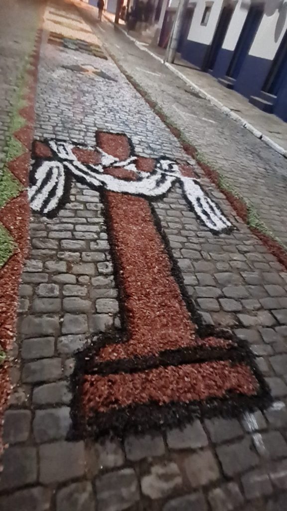 Em alguns tapetes vemos a palavra “PAZ” em referência as guerras no mundo.