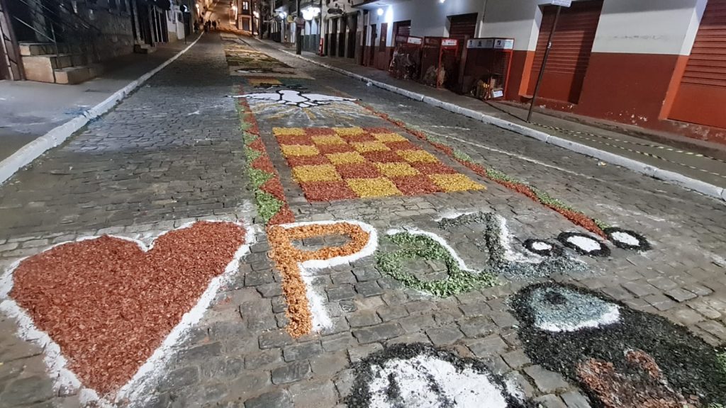 Os tapetes devocionais como são conhecidos é uma forma de honrar e homenagear o Corpo e Sangue de Jesus na Eucaristia. A palavra “Corpus Christi”, vem do latim e tem como significado: Corpo de Cristo.