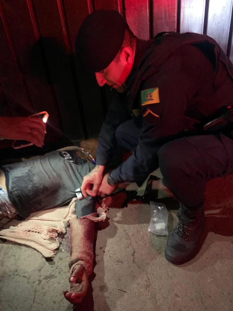 Demonstrando rapidez e preparo, a equipe da Polícia Municipal utilizou um torniquete e gaze de combate para estancar o sangramento, sendo que a vítima ainda apresentou choque hipovolêmico, porém, foi estabilizada até a chegada do Corpo de Bombeiros Militar, que realizou os procedimentos necessários e encaminhou a mesma para o Hospital Monsenhor Horta.