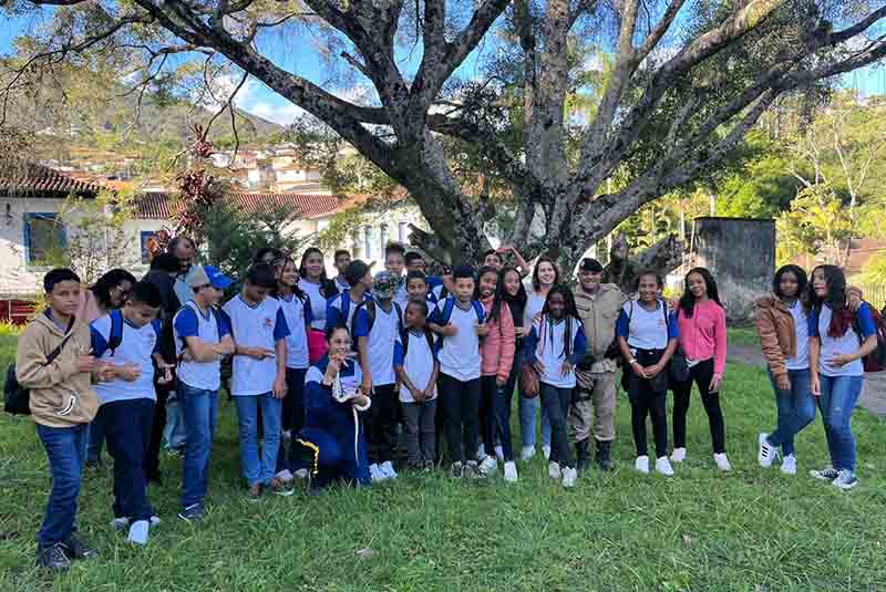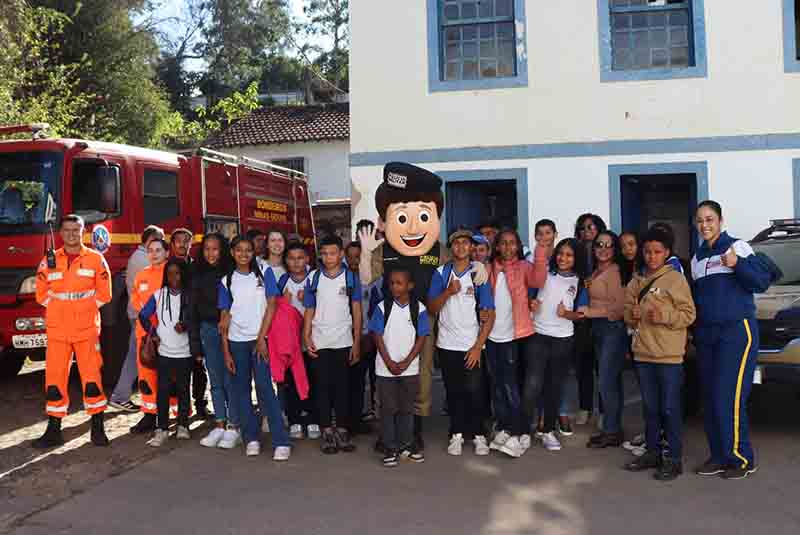 Alunos da Escola Municipal Dante Luiz dos Santos, de Barroca, localidade próxima a Cachoeira do Brumado, distrito de Mariana (MG), visitaram o 52o Batalhão de Polícia Militar (52o BPM), em Ouro Preto (MG), e viveram uma tarde de muito aprendizado, no dia 26-06-25. Além de conhecerem de perto o trabalho da Polícia Militar de Minas Gerais, os 32 estudantes do 6o ao 9o ano do Ensino Fundamental participaram de uma atividade educativa sobre consciência ambiental e cidadania, reforçando valores importantes para a formação de cidadãos responsáveis.