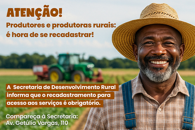 A Prefeitura de Mariana informa que será obrigatório o recadastramento de todos os produtores e produtoras rurais que desejam continuar utilizando os serviços oferecidos pela Secretaria de Desenvolvimento Rural. A medida tem como objetivo atualizar o banco de dados municipal e direcionar os atendimentos com mais eficiência e transparência, priorizando quem realmente vive e trabalha no campo.