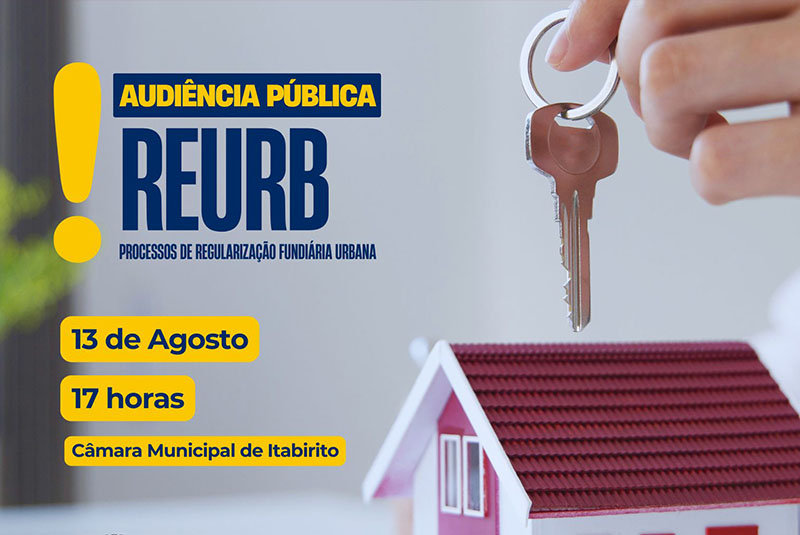A Câmara Municipal de Itabirito, por meio da Comissão de Serviços Públicos Municipais, convida a população e diversas instituições públicas e privadas para participar da Audiência Pública que discutirá os Processos de Regularização Fundiária Urbana (REURB) em andamento no município. O evento será realizado no dia 13 de agosto, às 17h, no Plenário da Câmara Municipal, localizado na Avenida Queiroz Júnior, nº 639, Centro, Itabirito/MG.