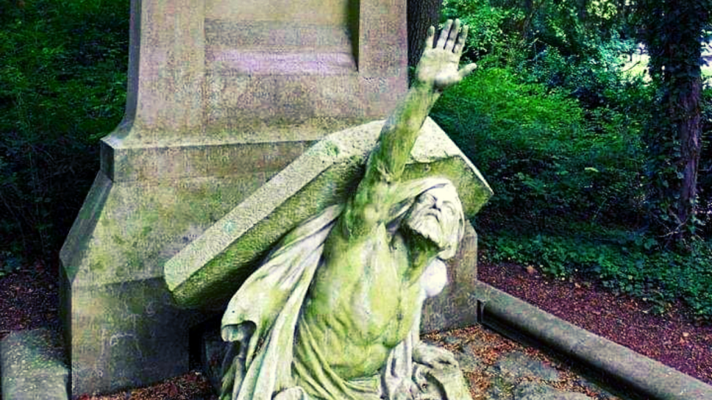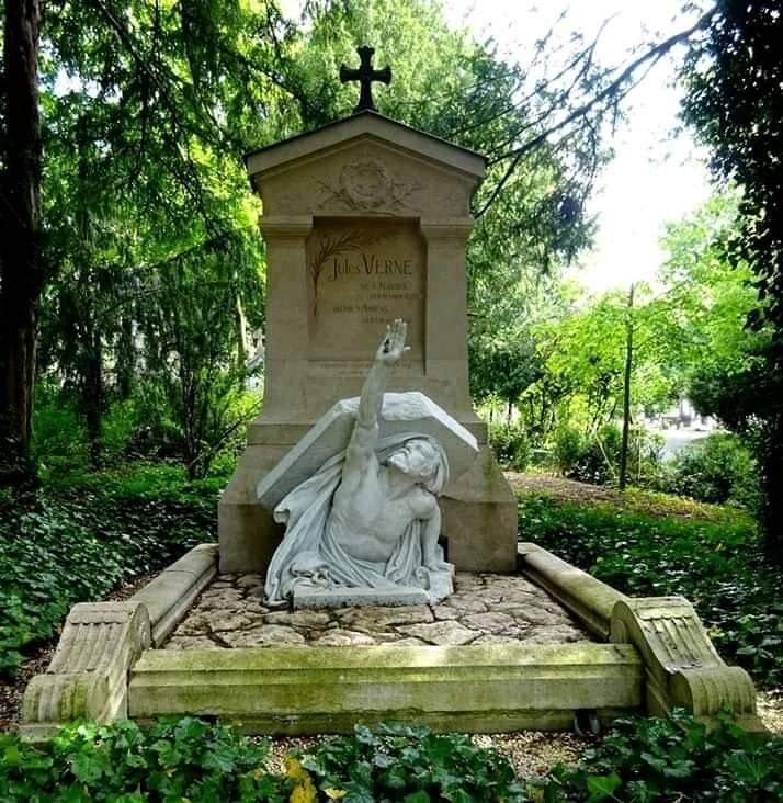 As pessoas que visitam o túmulo do lendário escritor Júlio Verne, no Cemitério de Amiens na França, podem se assustar com a figura esmagadora de um homem que emerge de seu túmulo, libertando-se de sua mortalha e quebrando a sua lápide.