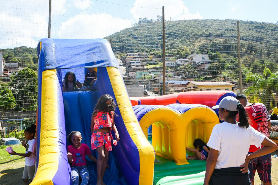 Realizada em parceria com as associações comunitárias locais, a ação aconteceu das 9h às 14h e contou com brinquedos infláveis e distribuição gratuita de pipoca e algodão-doce.