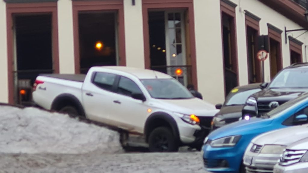 Na tarde desta sexta-feira, 29 de agosto de 2025, uma caminhonete ficou presa ao tentar subir em uma calçada de pedra no Centro Histórico, próximo ao Hotel Solar do Rosário O veículo, de cor branca, acabou ficando atravessado entre a rua e a calçada, chamando a atenção de motoristas e pedestres que passavam pelo local.