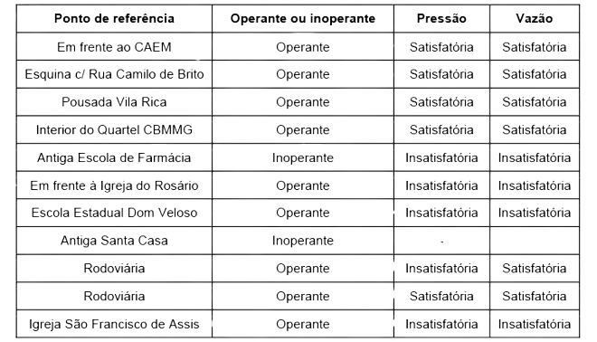 Um diagnóstico realizado pelo Corpo de Bombeiros sobre as condições dos hidrantes