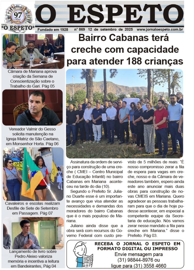 Leia edição 869 do jornal O Espeto: Bairro Cabanas terá creche com capacidade para atender 188 crianças