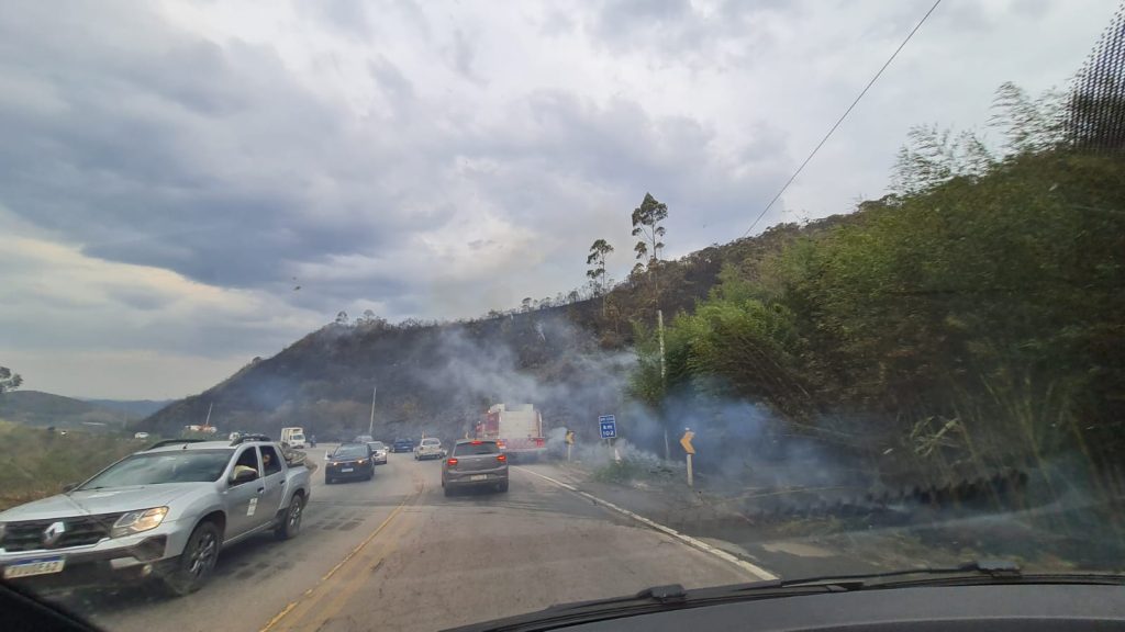 Carros passam próximos as chamas na divisa de Mariana e Ouro Preto ! Trânsito lento com a movimentação dos caminhões e caminhonetes dos bombeiros e brigadistas.