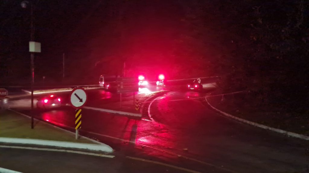 Atualização : às 20 e 10 minutos recebemos a informação que a rodovia foi liberada nos dois sentidos.