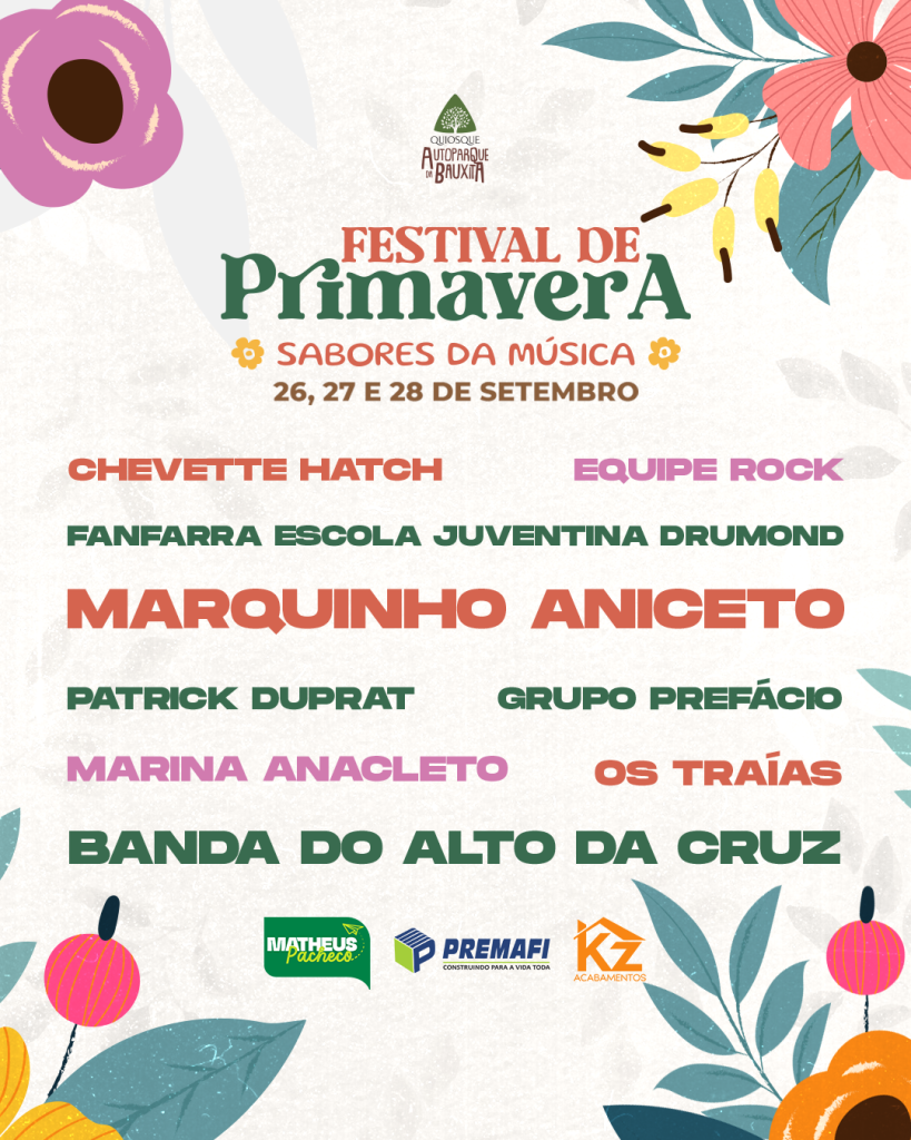 A chegada da estação mais charmosa do ano será celebrada em grande estilo com o Festival de Primavera – Sabores da Música, que acontece entre os dias 26 e 28 de setembro, no Quiosque do Autoparque da Bauxita.