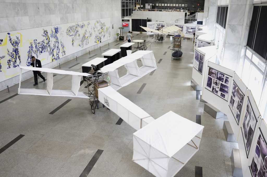 Réplicas de balões e aviões do Pai da Aviação podem ser conferidas na mostra.