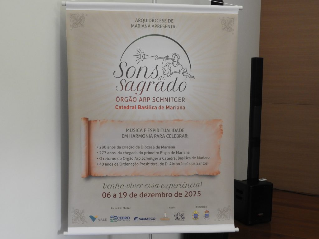 A Arquidiocese de Mariana apresentou, na manhã desta quarta-feira (22/10/2025), no Salão de Atos da Cúria Metropolitana, o projeto “Sons do Sagrado”, uma grande celebração religiosa, cultural e musical que marcará os 280 anos de criação da Arquidiocese, comemorados em 6 de dezembro de 2025. O evento contará com uma série de concertos, missas solenes e atividades educativas entre os dias 6 e 19 de dezembro, em Mariana.