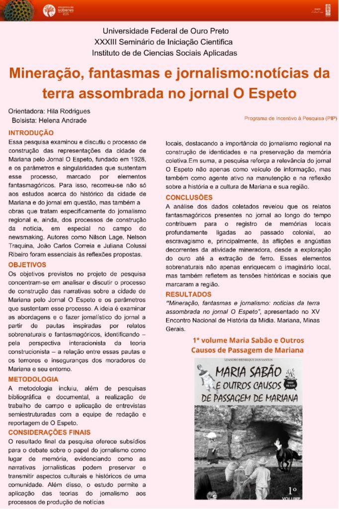 Durante as apresentações do Seminário de Iniciação Científica (SEIC), houve um trabalho de pesquisa realizado sobre a mídia local: “Mineração, Fantasmas e Jornalismo: Notícias da Terra Assombrada no jornal O Espeto”. O trabalho realizou uma pesquisa de campo na redação do jornal, em Passagem de Mariana, para investigar a abordagem sobre os causos de assombração que a publicação eventualmente cobre. A pesquisa demonstra a importância, para a cultura e a comunidade local, da manutenção dessas histórias orais contadas pela população, mostrando a confiança que a comunidade deposita no trabalho jornalístico de preservação da memória realizado pelo jornal.