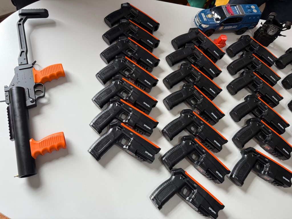 Foram adquiridas 25 armas de choque (Sparks) e dois lançadores não letais, capazes de disparar granadas de efeito moral quando necessário. O investimento representa mais um passo da administração municipal na modernização dos equipamentos de segurança e no fortalecimento das ações preventivas e operacionais em todo o município.