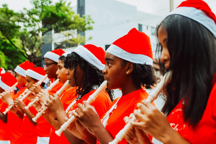 O evento teve início com o tradicional cortejo natalino, que percorreu a região central e contou com a presença do Papai Noel em seu trenó, apresentação da Fanfarra Fanpaz e intervenções artísticas voltadas para toda a família.
