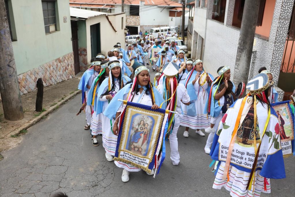 Neste domingo (16), o bairro Santa Cruz recebeu mais uma edição do Reinado da Guarda de Congo – Manto Azul de Nossa Senhora Aparecida e São Benedito, uma das mais importantes manifestações da cultura afro-brasileira em Ouro Preto.