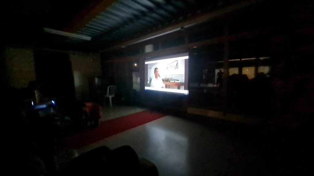 Houve pipoca e guaraná para todos. A presidente da Associação dos Moradores do Morro Santana Marcela disse que em breve será o documentário será divulgado no You Tube.