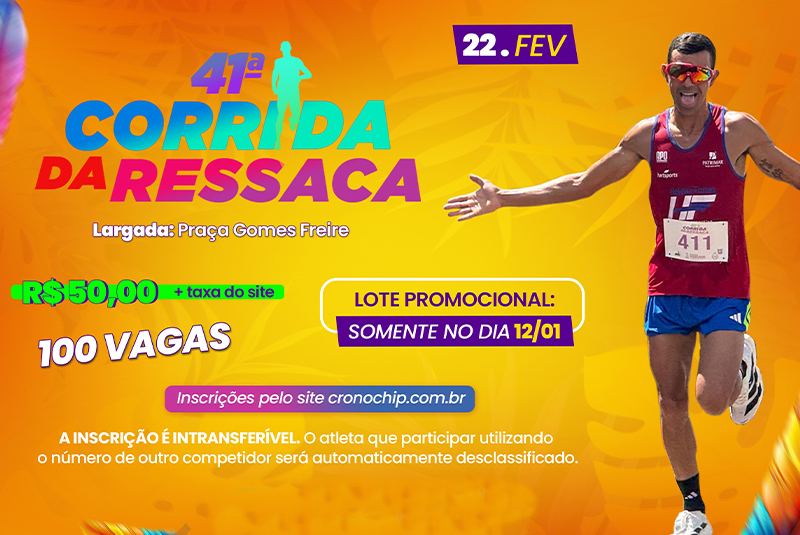 No próximo dia 22 de fevereiro, acontece a 41ª edição da tradicional Corrida da Ressaca. Organizada pela Prefeitura de Mariana, através da Secretaria de Esportes, Comunicação e Eventos, a competição terá cerca de 600 atletas participantes.