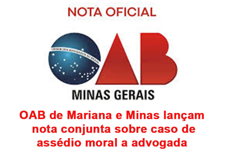 A OAB, Ordem dos Advogados do Brasil de Mariana junto com a OAB de Minas lançam nota conjunta sobre o assédio moral a uma advogada de Mariana que foi nomeada pela Justiça para representar um homem acusado de assassinato.