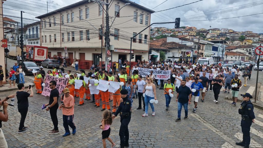 Devido a recentes casos de feminicídio a população de Mariana participa de passeata contra a violência à mulher.