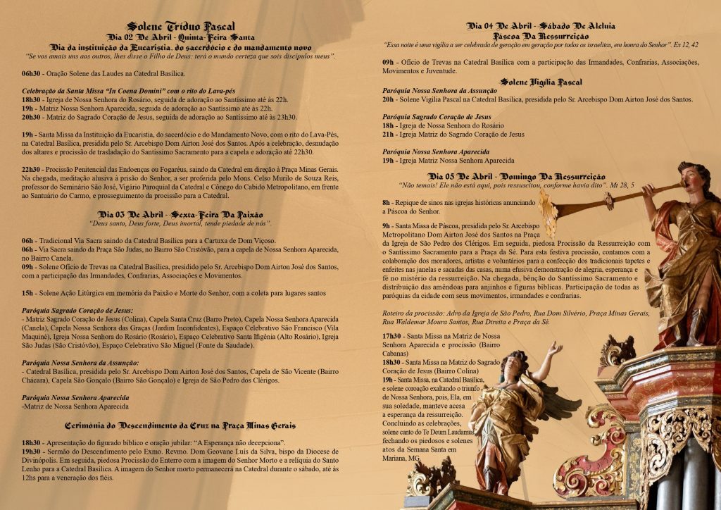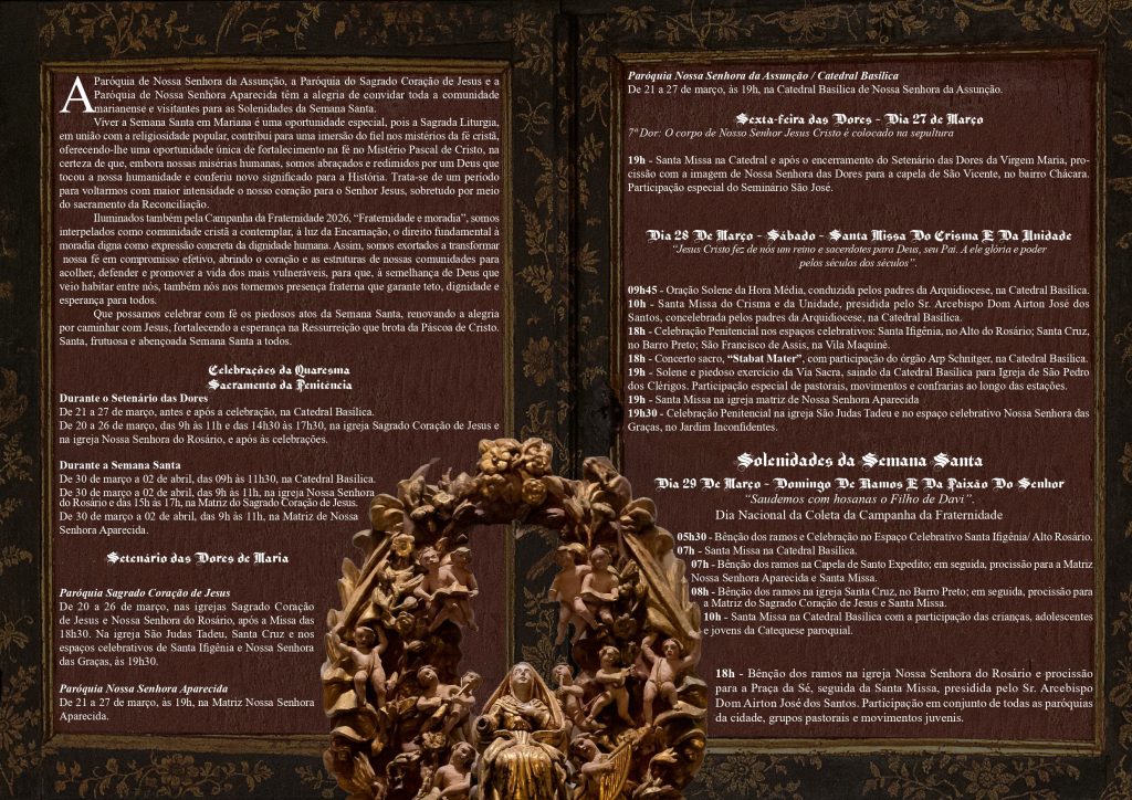 A Catedral Basílica de Nossa Senhora da Assunção, a Sé de Mariana, divulgou a programação da Semana Santa de 2026 na Primaz de Minas.
