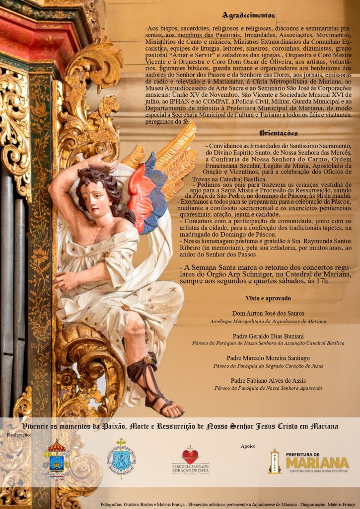 As celebrações são promovidas pela Paróquia da Catedral Basílica de Nossa Senhora da Assunção, em conjunto com as outras duas paróquias da sede de Mariana – Sagrado Coração de Jesus (Colina) e Nossa Senhora Aparecida (Cabanas) -, com o apoio da Prefeitura de Mariana, por meio da Secretaria de Patrimônio Cultural e Turismo.