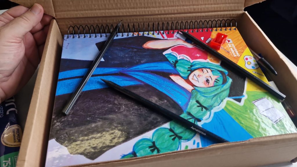 A estudante do 5° ano da Escola Estadual Leonina Mourthé de Araújo, Ashley Emanuele, de 12 anos, comenta sobre o kit recebido “O material que o Governo de Minas está distribuindo vai ajudar em muita coisa, complementando o que faltava no meu material, como caderno e outros itens”.