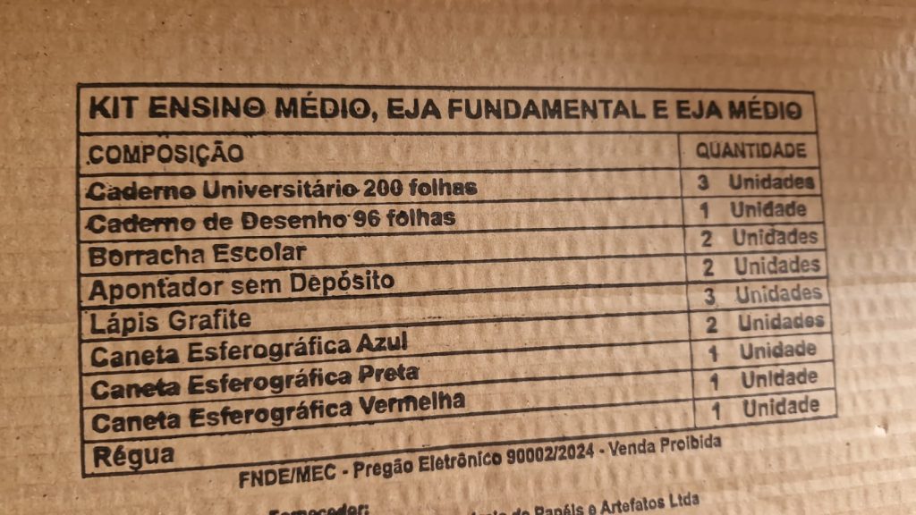 Para os estudantes da educação infantil e dos anos iniciais do ensino fundamental, os kits contam com itens como giz de cera e canetinhas hidrográficas, que contribuem para o desenvolvimento das habilidades motoras e criativas. Já para os anos finais do ensino fundamental, estão instrumentos como transferidor e esquadro, necessários para o aprendizado de conteúdos matemáticos avançados.